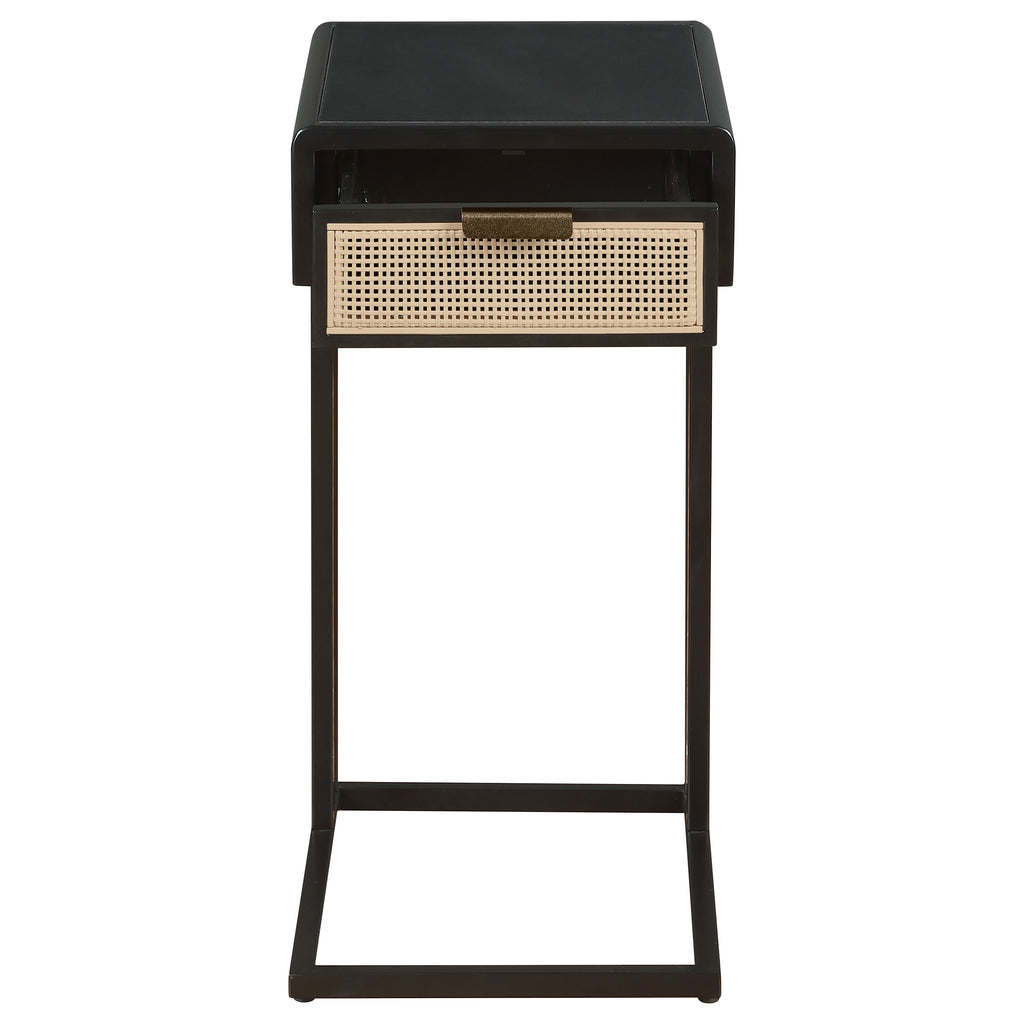 This C-shape side table effortlessly combines style and functionality, making it the perfect accent for your living space. Constructed with a sturdy heavy gauge metal frame, it offers lasting durability while maintaining a sleek, modern profile. The single drawer features a polyethylene (PE) rattan front, adding a touch of natural texture and charm. Its C-shape design allows it to slide easily under sofas or chairs, providing convenient surface space where you need it. This side table is both practical and stylish, ideal for any contemporary home.