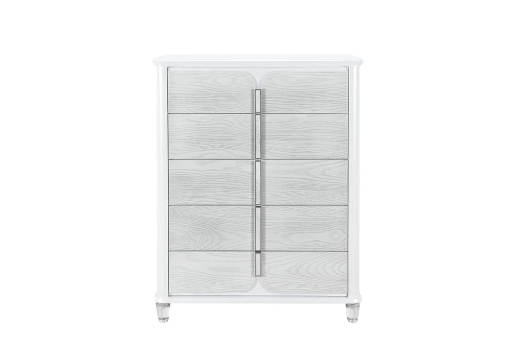 Maximize your storage with the Apollo Chest. Its textured drawer fronts and acrylic legs bring a contemporary feel, while its vertical design saves space without sacrificing style.