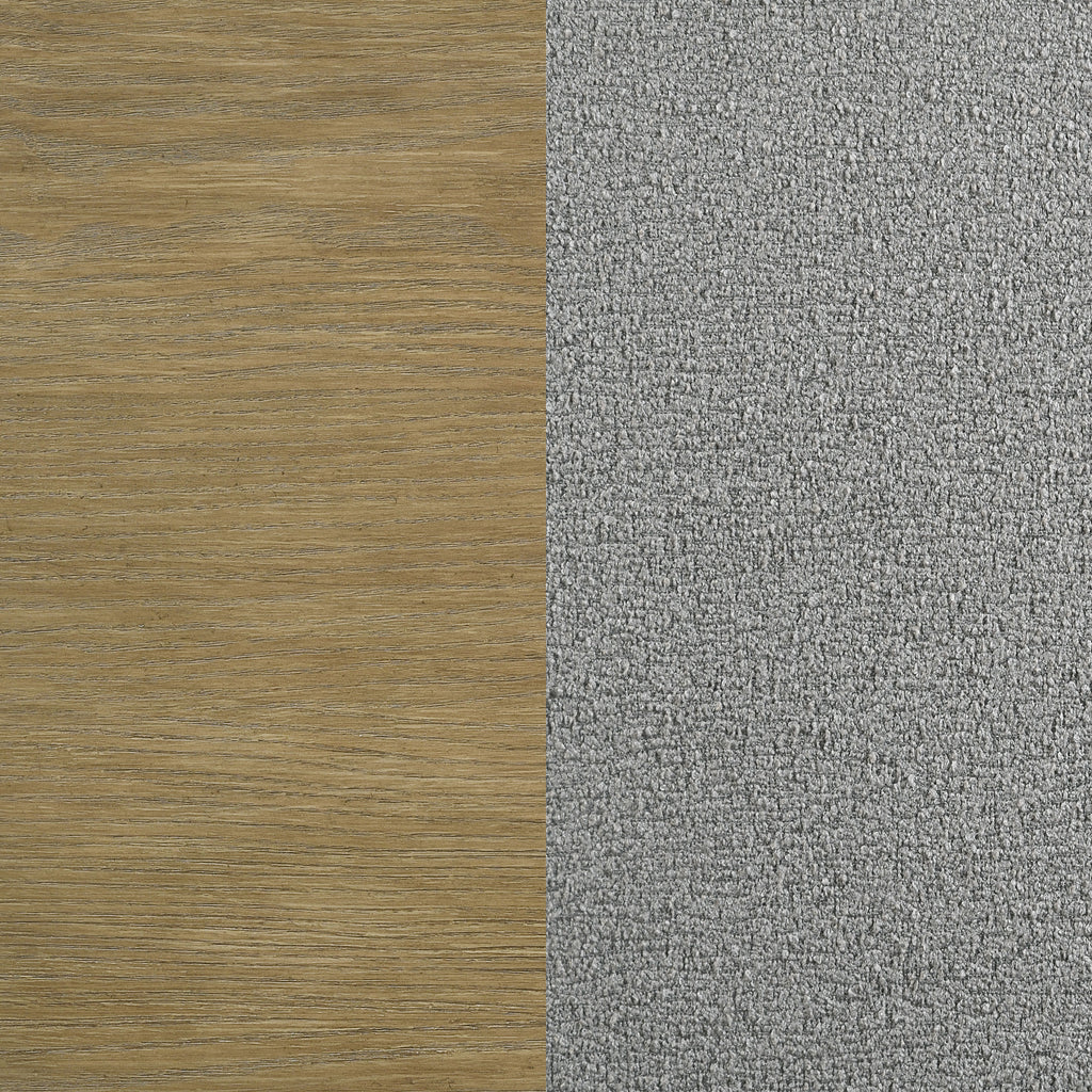 Create a relaxing atmosphere with the clean lines and neutral, wire-brushed, sand wash finish of this coastal bedroom set. A grey fabric padded headrest and footrest along with aged brass hardware throughout each piece offer lovely modern glam accents. Matching storage pieces and round framed mirror complete the set, offering thoughtful touches like felt-lined top drawers and a built-in tray.