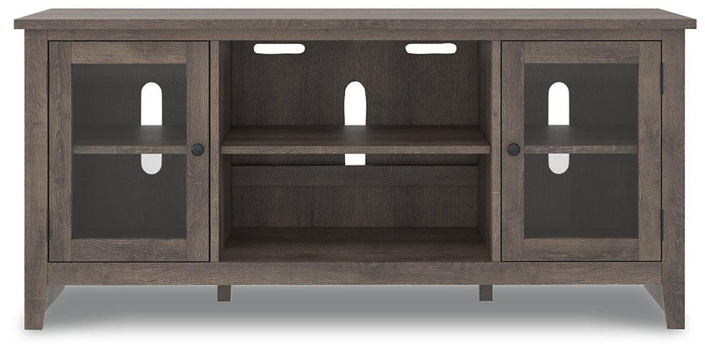 With its replicated weathered oak finish and minimalist charm, this TV stand with electric fireplace insert is right in tune with your relaxed approach to high style. Beautifully made to accommodate your media equipment, it’s well equipped with adjustable shelving, cutouts for wire management and a pair of glass-front doors that enhance the clean-lined aesthetic. The look is ideal for modern farmhouse and contemporary settings. Adding that much more show-stopping style: an electric fireplace insert that operates with or without heat and includes a six-level temperature setting, remote control and overheating control for added safety. The fireplace insert comes with optional faux glass crystals and natural stones, so you can customize the look of the flame bed.