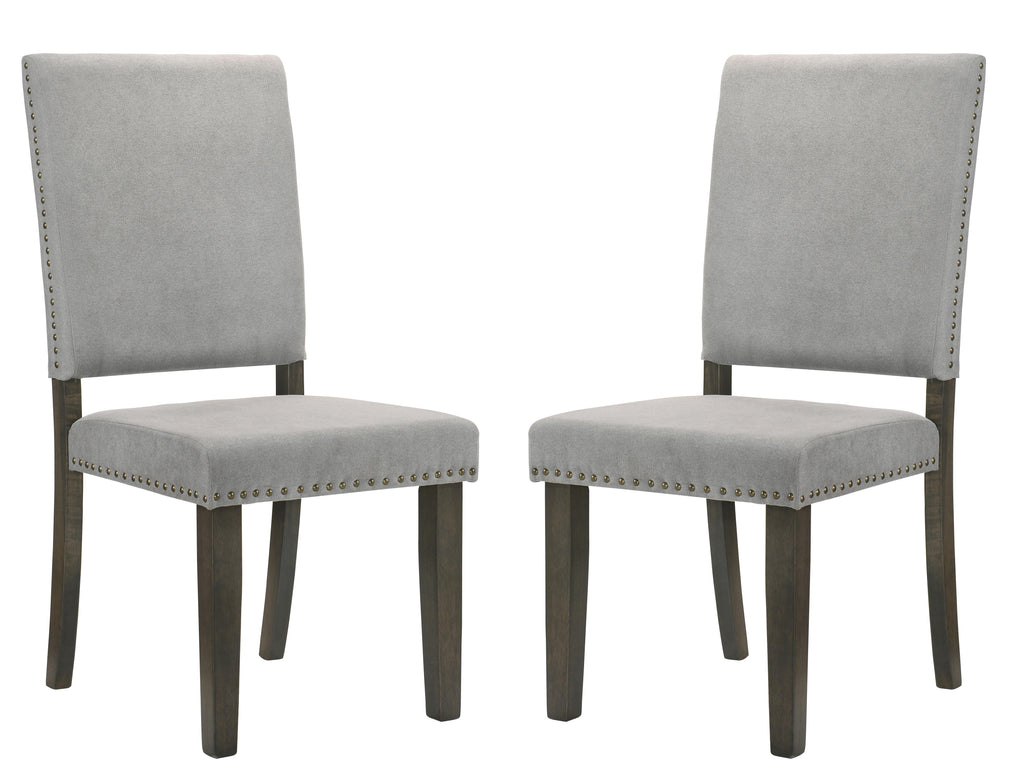 Cosmos Furniture's Asbury transitional style Dining Chair in weathered silver gray fabric comes as a Set of Two (2) Chairs. The Asbury collection offers a casual look, versatility and sleek style that enhances any dining room. High density foam on chair seat in contrasting with nail head trim details gives comfort and style to this piece. The set is made from wood and inlays, adding extra stability and durability to your dining experience. Asbury dining chairs are a great addition to enjoy quality time with family and friends. Sold in a set of 2. Matching Asbury Dining Table and more Asbury Chairs in (set of 2) are sold separately.
