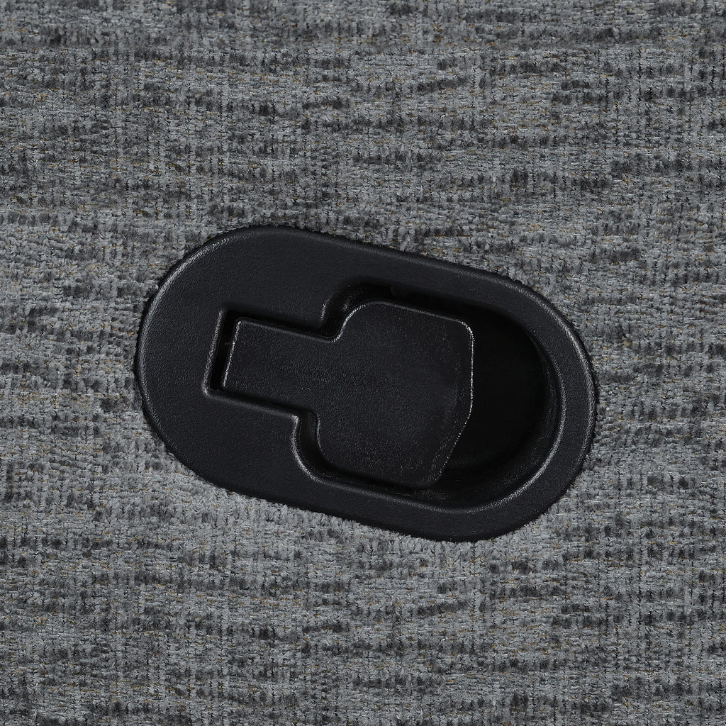 A trio of recliners and pair of consoles create a theater-inspired seating experience for your home. A modified power reclining sofa is the ultimate in indulgence, creating plush comfort and relaxation for movie marathons and Sunday game days. Charcoal fabric upholstery is smooth and soft, complementing seating designed for exceptional comfort and support. Each seat is divided with a storage console, offering a spot for snacks and essentials and offering a pair of cupholders that keep refreshments within reach. On either end of the sofa, pillowtop arms add plush, inviting style for your living area or dedicated media room.