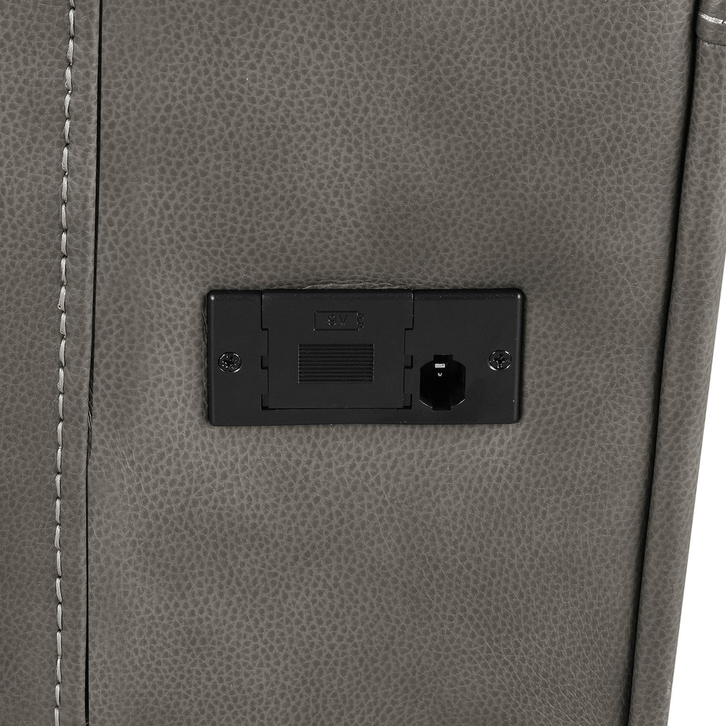 This triple power sofa set is crafted for complete relaxation and everyday luxury. Wrapped in soft leatherette with contrast stitching, each piece offers smooth reclining, adjustable lumbar, and power headrest support at the touch of a button. Hidden cup holders are tucked within each armrest, while a built-in control panel with USB A and USB C charging ports keeps essentials close. A rear-mounted power access panel includes an emergency battery feature for uninterrupted comfort, even during power loss. Key Features: • Triple power sofa set with power headrest, power lumbar, and smooth reclining support • Charcoal leatherette upholstery with contrast stitching adds modern texture and comfort • Hidden stainless steel cup holders in armrests keep beverages within easy reach • Power control panel includes USB A and USB C charging ports and home button • Rear AC power panel supports direct wall plug-in and optional 9V battery backup • Built from leatherette, foam, engineered wood, pine, and metal for lasting durability