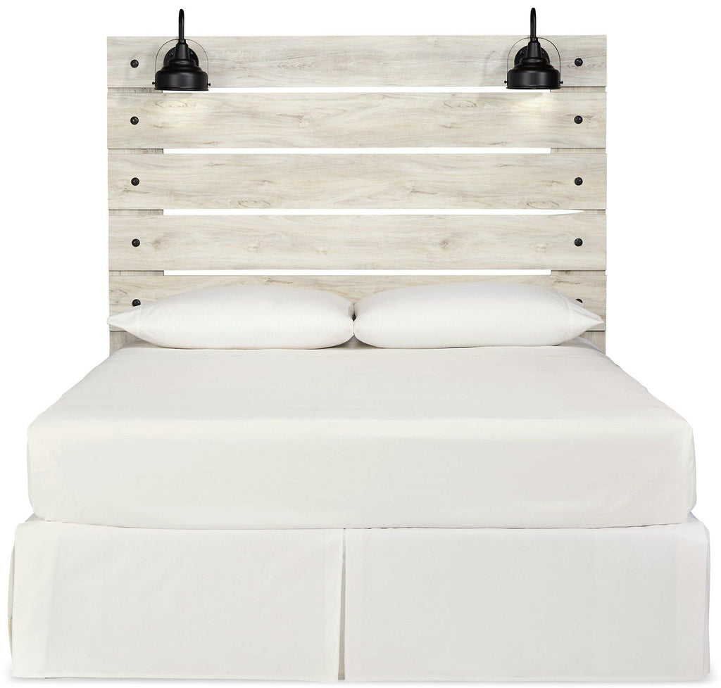 What a delightful take on rustic industrial style. Whether modern loft or modern farmhouse, this king panel storage bed makes itself at home. The wispy whitewash palette enhances without covering the grain for that weathered look you crave. Love to read in bed? You’re sure to find the retro-chic light sconces and USB plug-ins on the open-slat style headboard such a bright idea. Elongated drawer pulls on the under bed storage drawers elevate the aesthetic.