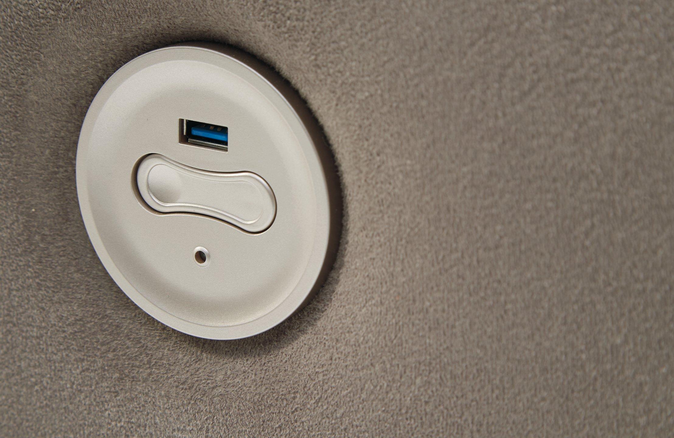 - One-touch power control with adjustable positions and USB plug-in