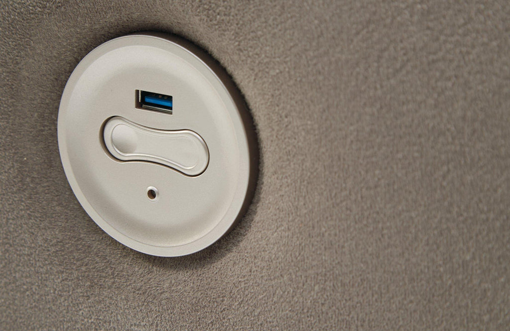 Strike a balance between the indulgent comfort you crave and the cool aesthetic you long for with this reclining power sofa. Offering the cool look of weathered leather, the feel-good slate-tone upholstery takes neutral to new heights. Simply chic divided back tailoring, jumbo stitching and a USB port in the one-touch power control are among the finer details that make all the difference.