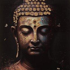 This glass wall art is the perfect addition to a tranquil space. With muted, calming shades of black, teal, rust and gold, this contemporary take on the meditating Buddha instills instant serenity in your home.