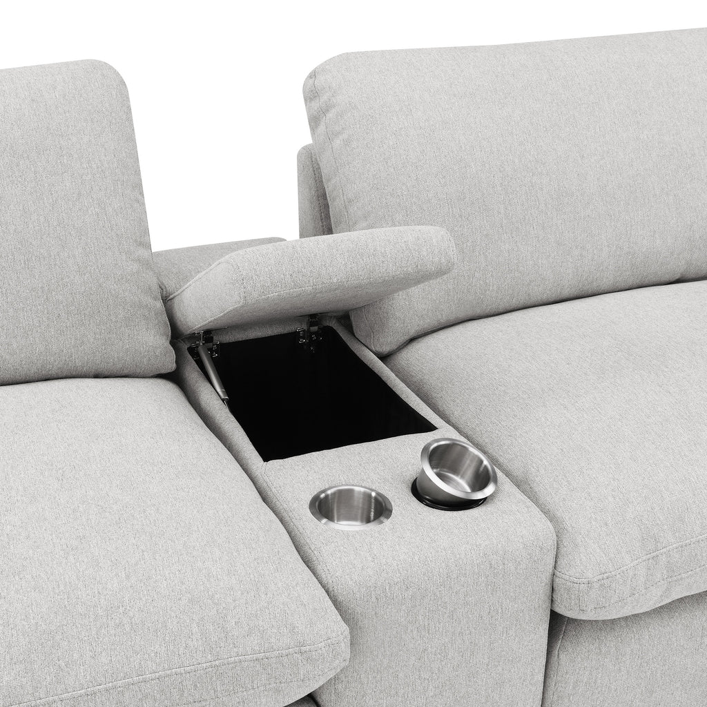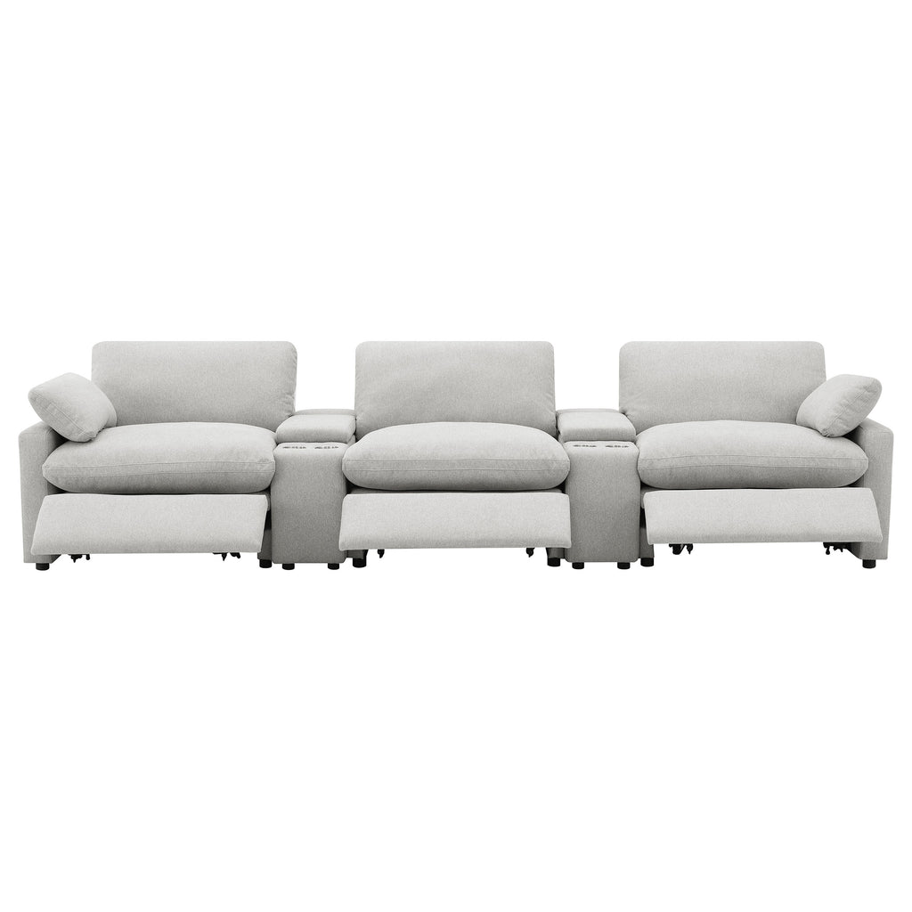 Transform your living space with the versatile modular sectional, designed to offer a perfect blend of comfort, style, and customization. This sectional features three power reclining pieces and two non-reclining pieces, allowing you to create your ideal seating environment. With the option to add additional power or non-power armless chairs, you can customize the layout to suit your room and preferences. Enjoy the plush comfort of premium down-like filled cushions and a sleek, modern design that enhances any decor. Experience the ultimate in relaxation with the power reclining pieces, featuring a 4-inch wall-hugging design for full recline without needing excessive space.