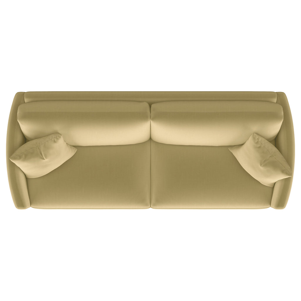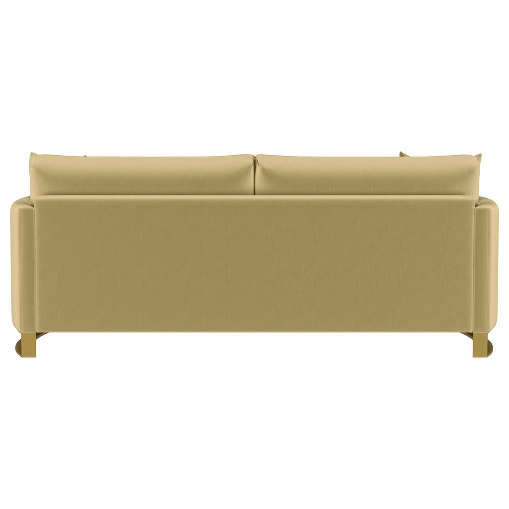 Indulge in opulent comfort with this textured velvet sofa. Its reversible feather blend seat and back cushions, complemented by curved arms and gold stainless steel legs. Smooth upholstery and lustrous details blend simplicity with timeless splendor, making this piece a perfect focal point for refined interiors. With its inviting profile and graceful presence, it elevates both style and relaxation. Key Features: • Sofa with plush seating designed to elevate both comfort and style • Textured velvet finish in a warm camel hue • Reversible feather blend cushions ensure adaptable support • Curved arms and gold-accented stainless steel legs add subtle luxury • Fully encased engineered wood frame with sinuous springs and pocket coils • Reversible seat and reversible back cushions for easy maintenance