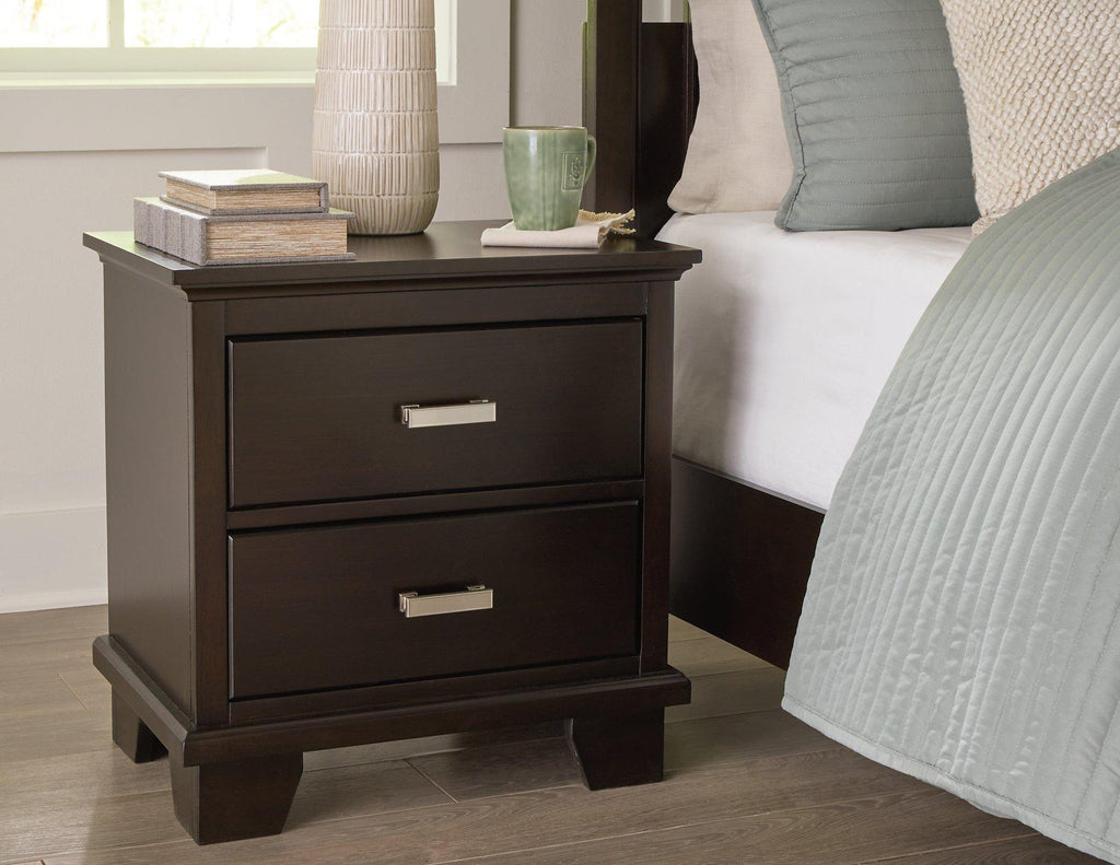 Feast your eyes on this richly versatile bedroom package. Its traditional-inspired dark brown finish effortlessly blends with contemporary details to create a stunning look that's not too stuffy or too trendy. Such a refined way to wake up your bedroom style.