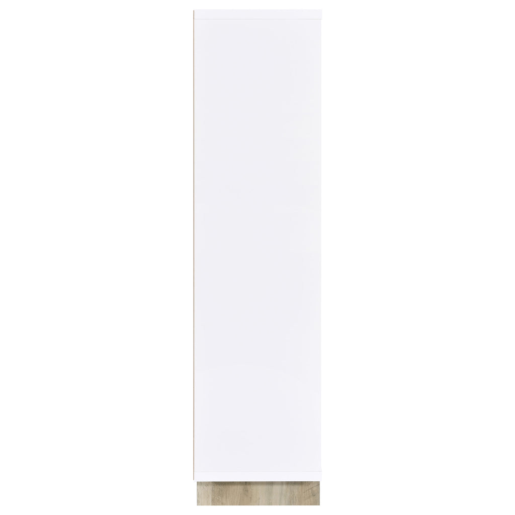 Indulge in the cozy, charming nature of a decorative bookcase. It's an asymmetric design with eight compartments over six shelves, offering easy spaces for decor, books, and other personal treasures. The bookcase shows off a two-tone finish combination, complete with white sides and shelves that brighten, and a brown wood grain back and legs, creating depth and contrast. Arched trim adds character to two of the compartments, perfect for highlighting favorite items. This versatile bookcase is a stylish choice in a foyer, living area, bedroom or even in your office. Key Features: • Arch details create charming cottage core charm for a modern bookcase • Eight compartments create stylish spaces to create vignettes and display treasured decor pieces • Two-tone finish creates depth with a brown wood backing and legs and white sides and shelves • Asymmetric design is ideal for decorative appeal in a foyer, living area, or bedroom • Includes tip-over restraint for safety and features plastic glides to protect flooring underneath