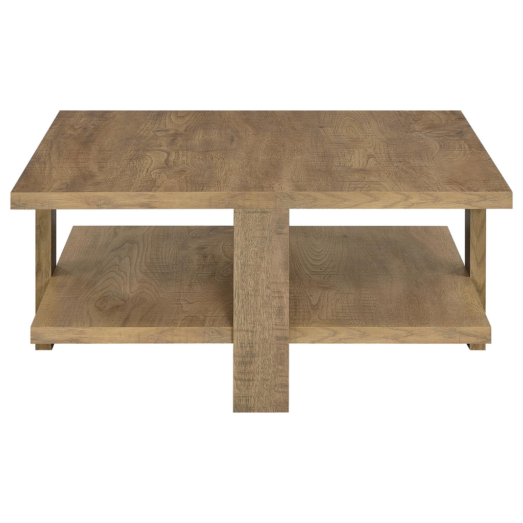 This coffee table set features a perfect blend of clean lines and natural beauty. Each table in the set is crafted from engineered wood with a mango finish and a rough sawn texture, offering two practical surfaces. The wide, board-like legs enhance the linear design, adding a rustic touch. Designed with versatility in mind, this set offers ample space for display, serving, or storage while bringing earthy charm and modern functionality to any living room. Key Features: • Coffee table set with dual surfaces for functional storage and display options • Engineered wood construction with a mango finish and rough sawn look • Rustic design with wide, board-like legs for enhanced linear structure • Versatile tables perfect for serving or storing in casual living spaces • Mango wood look adds natural charm while complementing modern designs • Durable, easy-to-maintain laminate veneer surfaces for everyday use