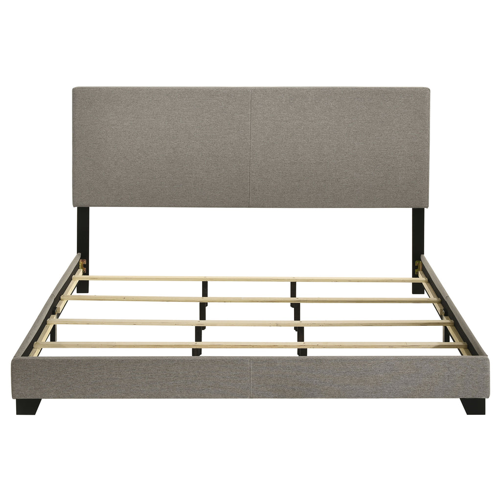 Transform your bedroom with this versatile panel bed, available in both faux leather and fabric upholstery options to suit any decor. Featuring a padded headboard and sleek design, it offers modern elegance and everyday comfort. Crafted with Asian hardwood, engineered wood, and foam, it ensures durability, while solid wood legs in a black finish add stability and a refined touch. The platform construction eliminates the need for a box spring, making it both stylish and functional.