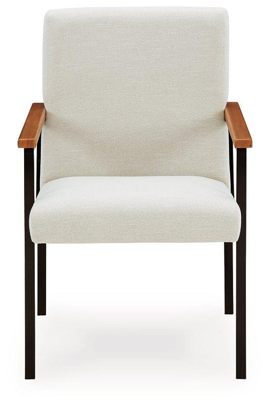Discover something extraordinary with this upholstered dining arm chair. Its wood armrests are paired with a black metal frame for a clean-lined contemporary appeal. Strikingly simple, this piece creates an understated, modern feast for the eyes whether it’s used for dining or when friends drop by to hang.