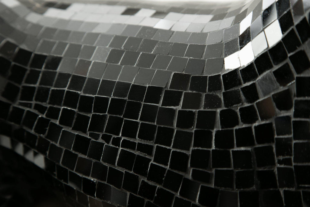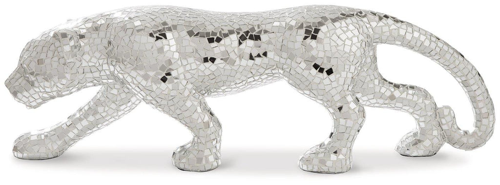Decorate your home with this iconic mixed media sculpture. Featuring mosaic glass and paper composite, this panther will add an exotic element to any space. Create a fierce look in your bedroom or luxurious allure in your living room with this unique and thought-provoking piece.