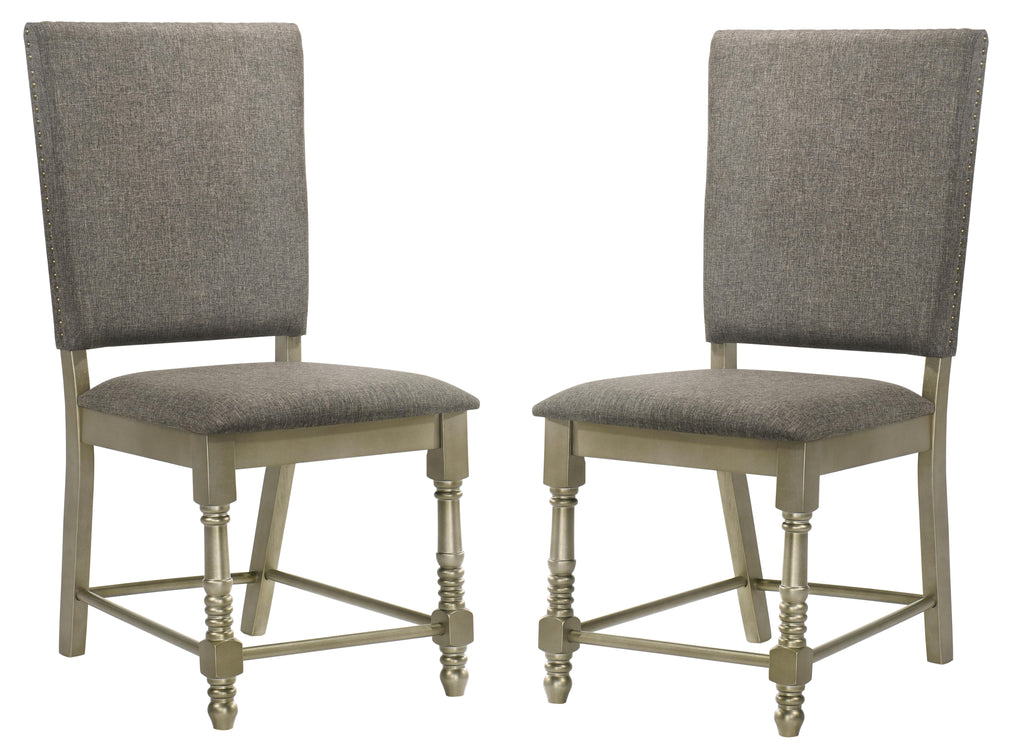 Cosmos Furniture's Eden transitional style Dining Chair in dark gray fabric with mettalic gold wood comes as a Set of Two (2) Chairs. The Eden collection offers a casual look, versatility and sleek style that enhances any dining room. High density foam on chair seat in contrasting with nail head trim details gives comfort and style to this piece. The set is made from wood and inlays, adding extra stability and durability to your dining experience. Eden dining chairs are a great addition to enjoy quality time with family and friends. Sold in a set of 2. Matching Eden Dining Table and more Eden Chairs in (set of 2) are sold separately.