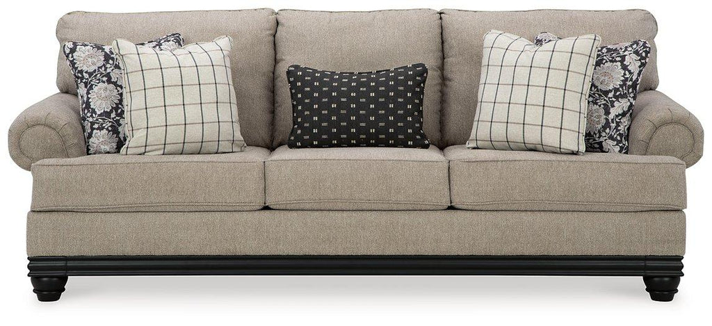 This sofa suits those searching for a fresh take on versatile style, seamlessly transitioning from casual to modern with your decor. Its flexible character comes courtesy of a chunky fabric. Matte black wood trim creates innovative contrast. A virtuoso of form and function, this sofa is a superb addition to your simply sophisticated seating arrangement.
