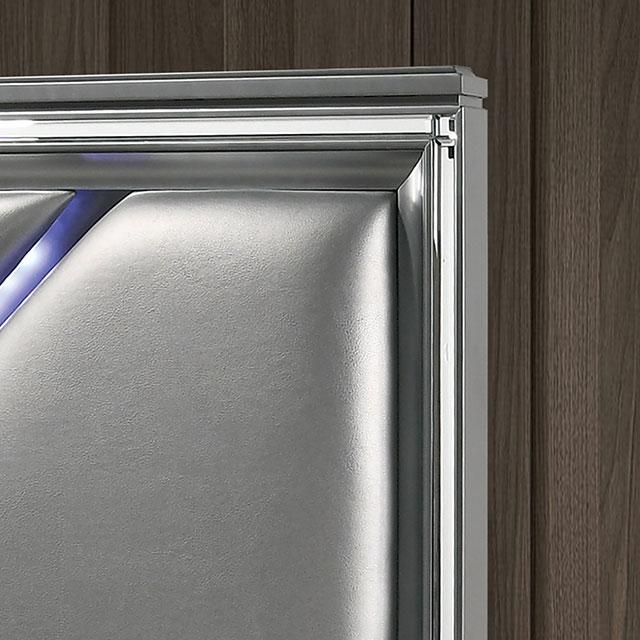 EMMELINE Cal.King Bed, 89 1/2"L X 78 3/4"W X 67 1/4"H, 318.5lbs. The enticing combination of glamour and Art Deco has long been attempted, but rarely with such successful results as achieved with this set. It is a visual masterpiece, harkening to the days of Old Hollywood while establishing a rich, dynamic concept for the bedroom. The embroidered padded headboard shines as if illuminated. The jewel-carved faux glass feet support the components with regal authority. Classic embossed patterns tie the set together in one magnificent and highly desirable theme.