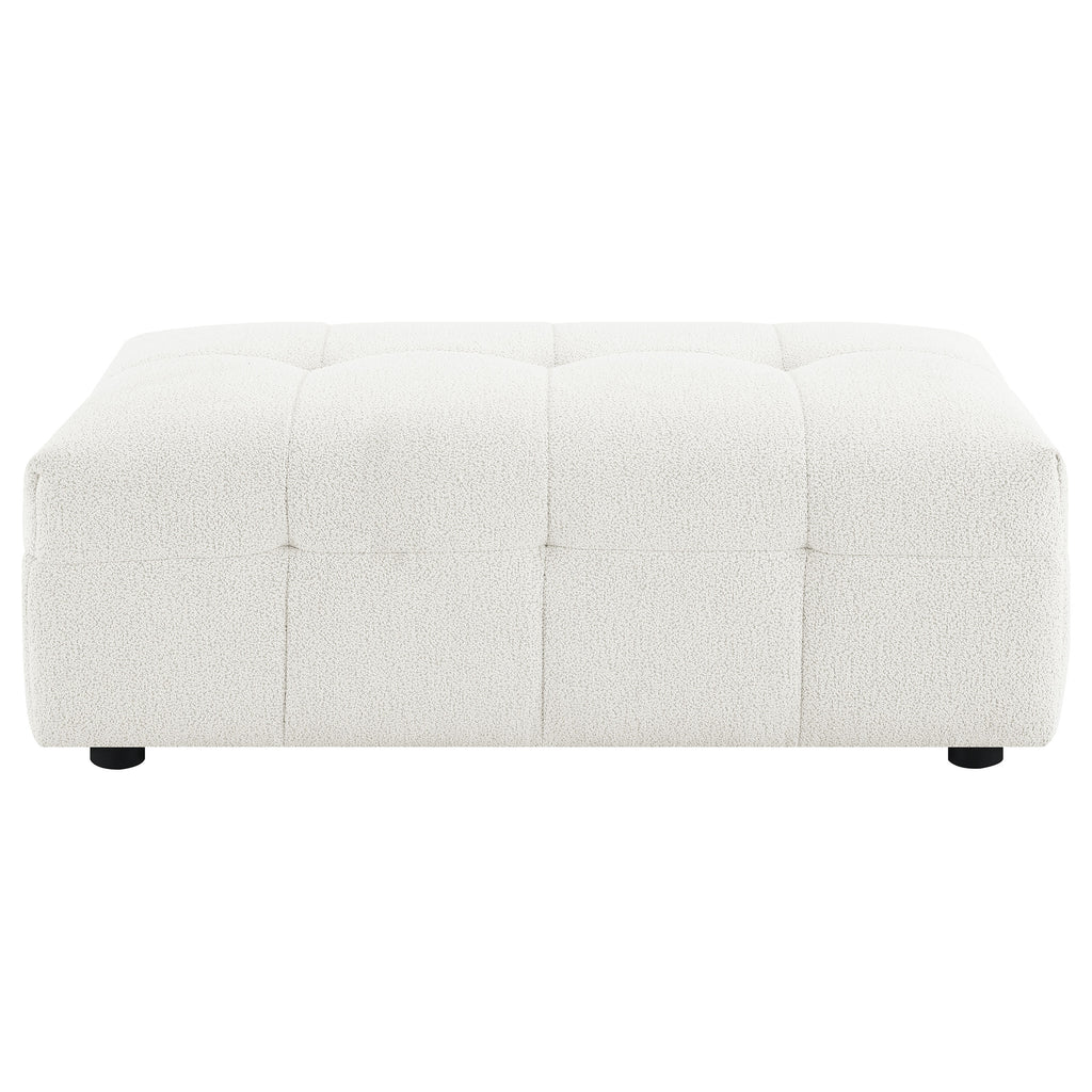 Enhance your lounging comfort with the versatile and functional ottoman. Designed to provide added leg support, this ottoman can be used as extra seating or a convenient footrest. Wrapped in soft textured boucle upholstery, it offers a plush and luxurious feel that complements any living room perfectly. The ottoman is designed for versatility, allowing you to flip and reposition it to suit your needs, extending your lounging area for ultimate comfort and convenience. Whether used on its own or paired with the matching sofa, this ottoman is a stylish and functional addition to any living space.