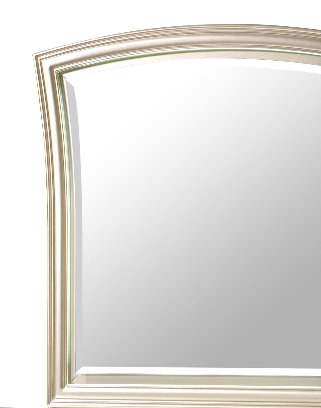 Cosmos Furniture's Faisal transitional style Mirror has metallic beige finished wood which is an impeccable example of truly memorable luxurious transitional design. The arched Mirror has a beautiful designed frame with intricated carving around the border. This beautiful piece has a broad frame to match the bedroom theme. Matching Dresser to accentuate this grand Mirror and other bedroom pieces are sold separately to complete the entire look of your excellent taste.