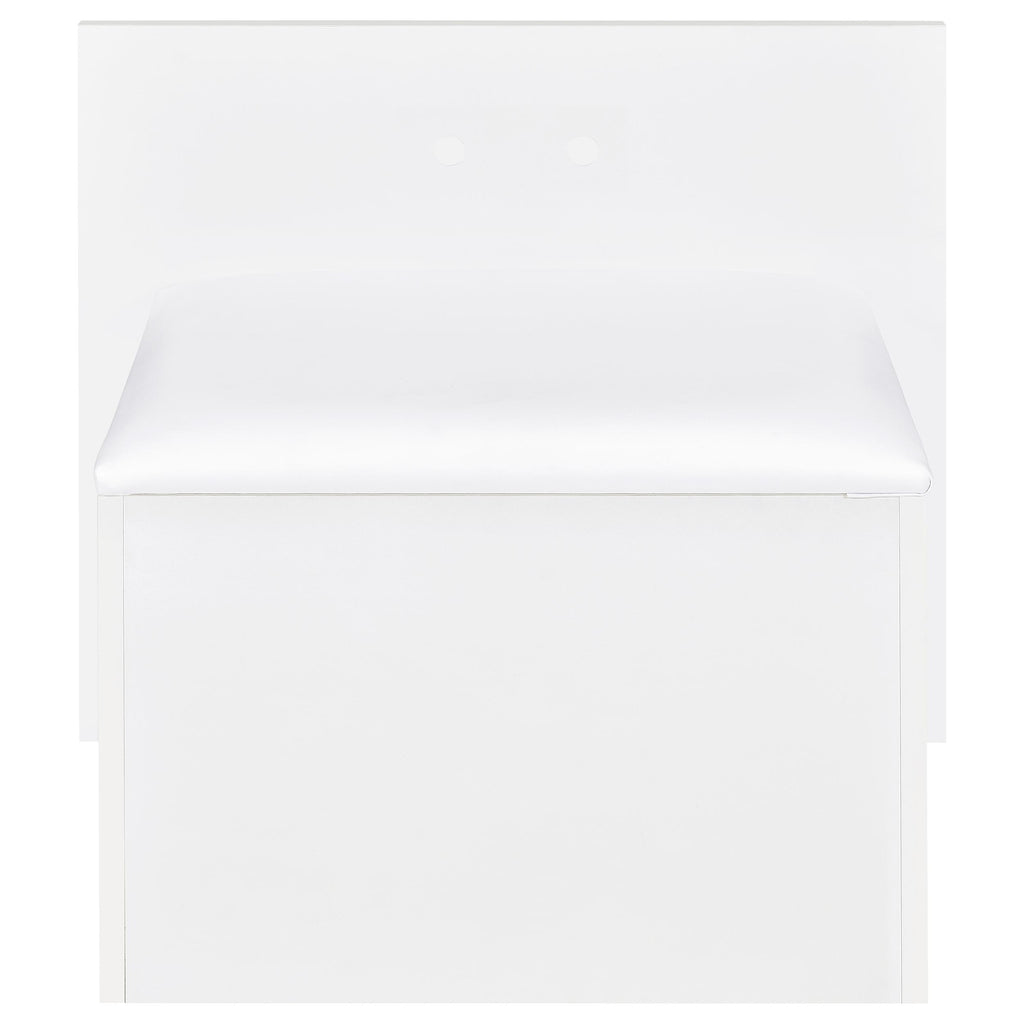 Transform your daily routine with this modern vanity desk, expertly merging sleek aesthetics and smart organization. Its high gloss finish, paired with clear acrylic handles, imparts a bright, contemporary look. Two smooth-gliding drawers and a cabinet with a framed fluted panel and adjustable shelf provide ample storage for cosmetics and styling tools. A tempered glass top keeps the surface pristine, while the integrated LED mirror, activated by a touch switch, ensures flawless lighting for every occasion. Key Features: • A vanity desk featuring a crisp white high gloss finish • Integrated LED mirror with touch switch for perfect illumination • Two drawers and a cabinet with a framed fluted panel for organized storage • Adjustable shelf inside the cabinet to fit various accessories • Clear acrylic handles and tempered glass top for a stylish, modern flair • Crafted from engineered wood for lasting durability and chic appeal