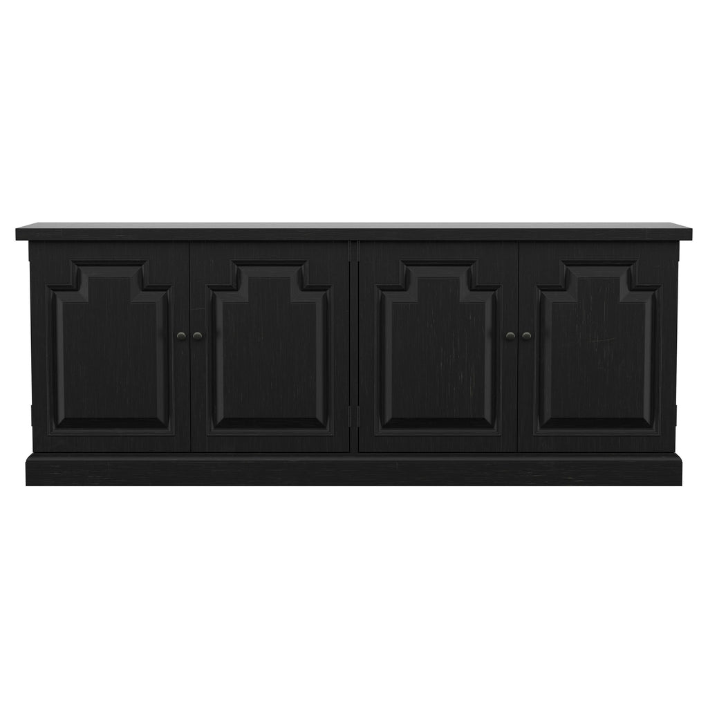 This four-door sideboard offers a refined blend of storage and style, perfect for dining and entertaining spaces. Crafted from pine, plywood, and pine veneer, it features a beautifully planked top that enhances its rustic charm. Raised panel doors lend a classic, sophisticated appeal, while the spacious interior includes two nested drawers with self-closing metal slides for effortless organization. This versatile piece functions beautifully as a server, providing ample space for dishware and linens. With its elegant craftsmanship, it also serves as a buffet, adding both convenience and timeless appeal to any home.