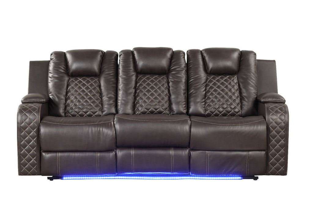 Galaxy Home Benz LED & Power Reclining Sofa in Brown, 37.4W x 85.04D x 39.37H, 247lbs.