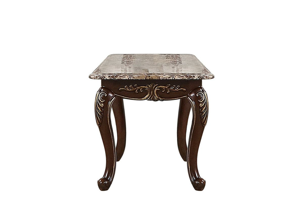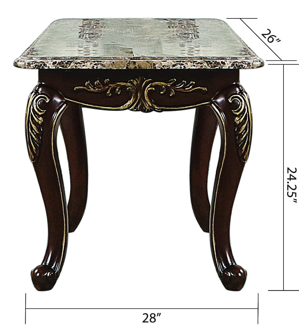 This end table is crafted from wood with a rich cherry finish. Its design effortlessly harmonizes with different interior styles, making it a versatile accent piece for any Livingroom. The end table top made of real marble, providing a stylish surface for your essentials and enhancing the overall appeal of your living space.
