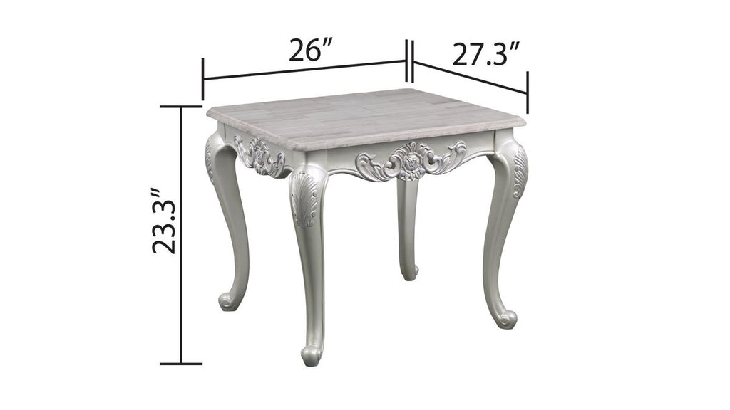Galaxy Home Melrose End Table in Silver, 27.75W x 26D x 23.75H, 48.5lbs.