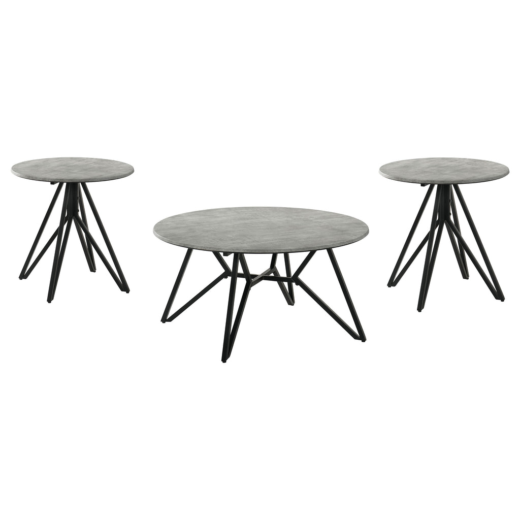 This modern coffee table set features a break-proof and shock-resistant faux cement top with a sandy texture, combining industrial style with practicality. The high-pressure laminate surfaces resist stains, UV light, scratches, and cigarette burns for exceptional durability. Gunmetal-finished metal bases with striking geometric designs provide stability and a sculptural aesthetic. Perfect for modern and minimalist interiors, this occasional table set adds functionality and style to your living space. Key Features: • Coffee table set with durable cement-like textured tops for industrial charm • High-pressure laminate surfaces resist stains, UV light, scratches, and burns • Gunmetal-finished geometric metal bases provide stability and modern appeal • Break-proof and shock-resistant surfaces ensure reliable durability • Spacious tops offer ample room for decor, books, or refreshments • Hairpin-style legs create an industrial and sculptural design aesthetic