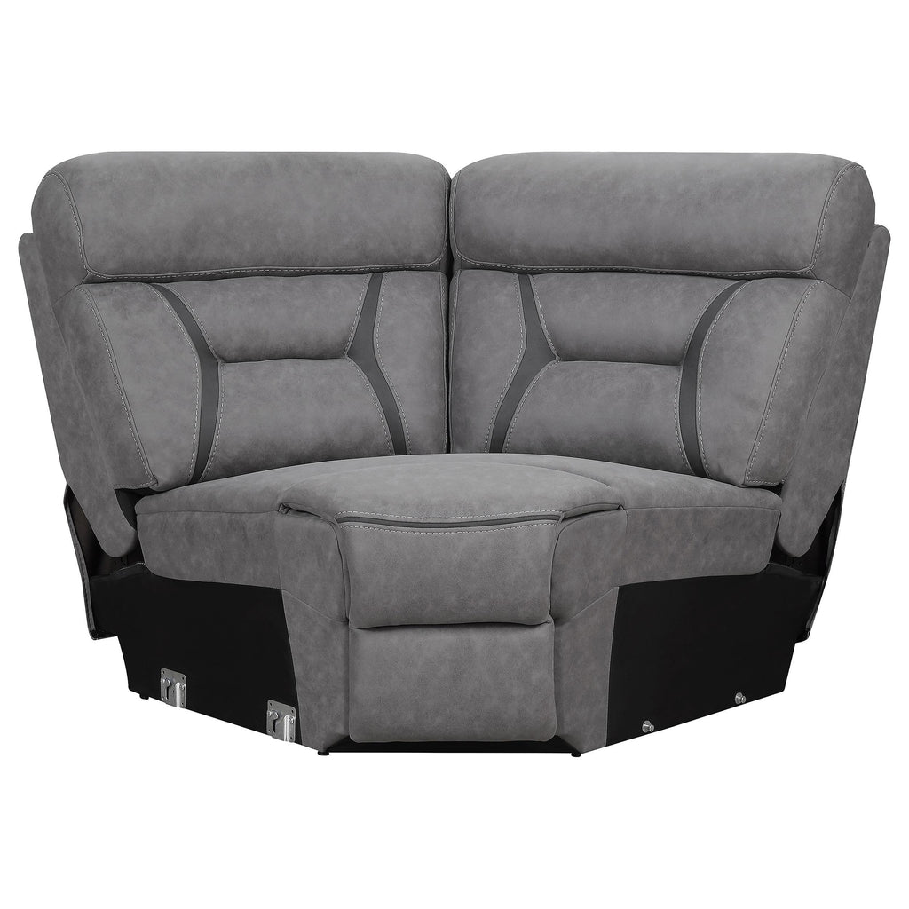 This sectional wedge expands seating capacity while maintaining a seamless and cohesive modular design. Upholstered in soft grey microfiber, it features plush cushioning and a supportive channel-tufted backrest for optimal comfort. The angled design allows for a smooth transition between sectional components, creating a spacious seating arrangement. Built with durable construction, this wedge ensures lasting support and stability.