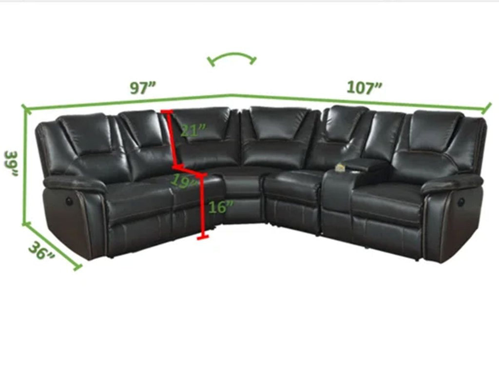 Beautiful transitional design medium-firm setting sectional, the comfortable lower back lumbar support. Headrest for a comfortable head and neck support, power reclining for ultimate motion reclining adjustment. USB charger on every arm for convince of charging phone other devices. High-performance leather gel easy to clean martial, contrast baseball stitching to give the product a nice contemporary look.