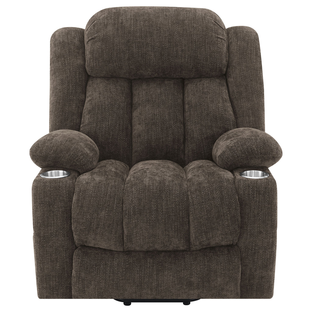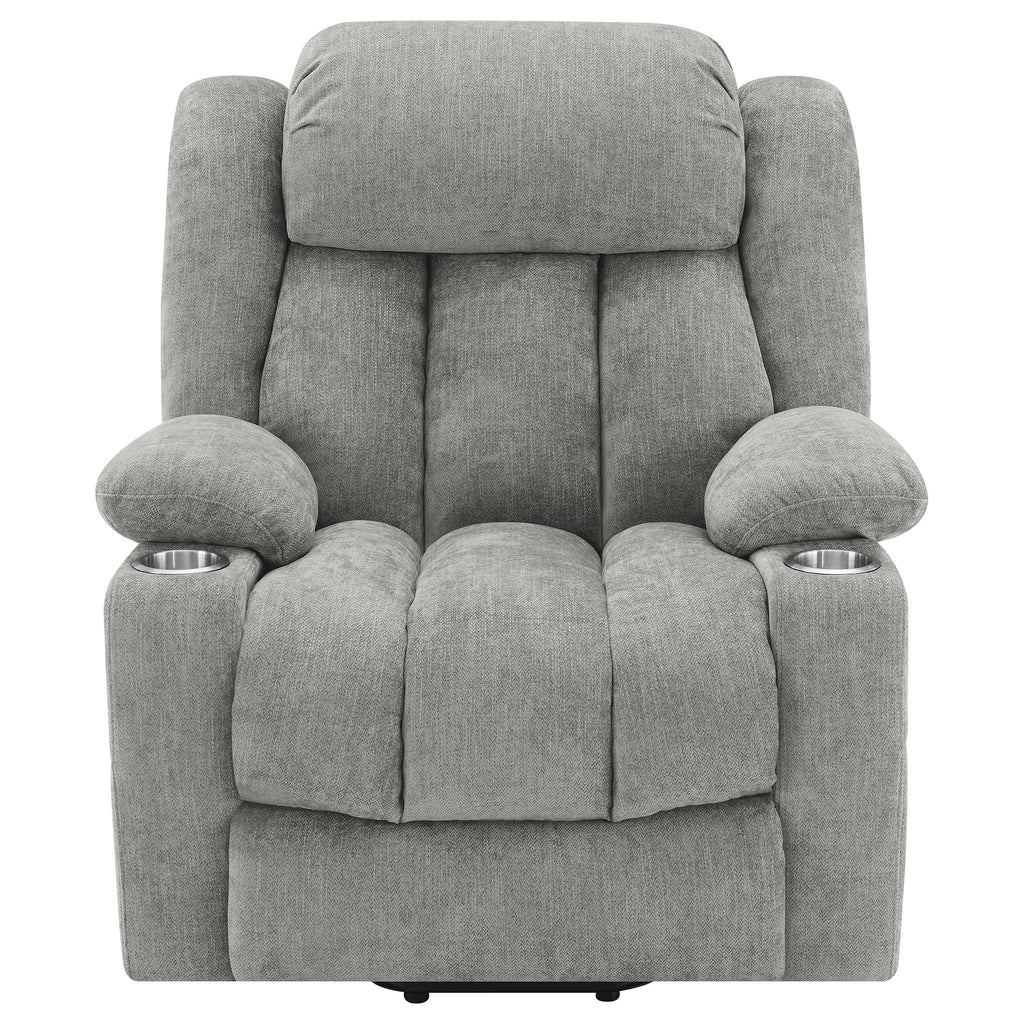 Deliver exceptional comfort and convenience with a modern power lift recliner that allows you to kick back and relax while also assisting you in getting back on your feet. Its plush, overstuffed look is inviting in a living room or den, while contour tufting creates exceptional support for your whole body. The recliner is operated with a power panel that includes simple buttons and a built-in USB port for easy access. The power panel is on the right side when seating and is paired with a soft pocket, perfect for tucking reading materials or a puzzle book. Soft upholstery, pillowtop arms and two cupholders add to the inviting look and feel of this charming recliner.