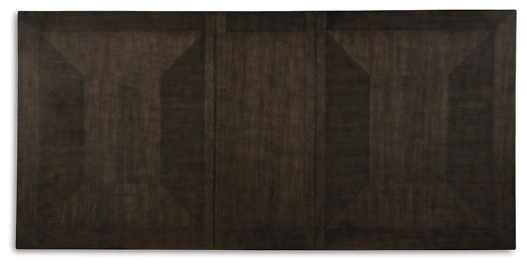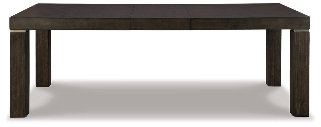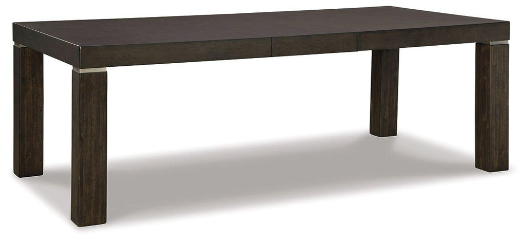 This extension table serves up clean-lined, contemporary style with a sleek, linear profile and rich espresso finish. Fresh elements including a subtle geometric veneer inlay top and a floating effect Parsons leg keep this table relevant and on trend. The drop-in leaf makes entertaining drop-in guests a breeze.