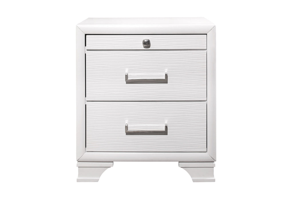 Introducing the Jordyn Bed Group from Global Furniture USA, the ultimate statement for any bedroom. The bed is designed with a platform design, eliminating the need for a box spring while adding room for storage drawers. The headboard features built-in lighting and two storage drawers for convenience. All case pieces are lacquer finished and feature nickel hardware. Upgrade your bedroom with the Jordyn Bed Group and enjoy its sleek and modern design for years to come.