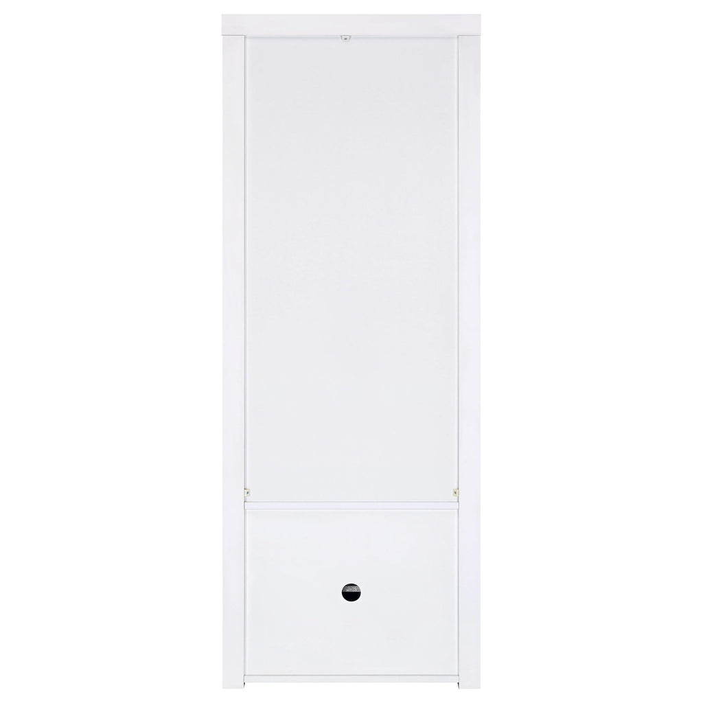 Extend a media console or add easy display space in a den or bedroom with this contemporary tower. Designed to accompany the matching media console, the tower adds a lower cabinet with shelving inside, and a pair of glass display shelves. It’s the perfect solution when both hidden and accessible storage are desired. A crisp white finish adds to the modern look and complements virtually any space. Melamine paper surfaces are designed for durability, perfect for everything from games and media to charming decor. Key Features: • Contemporary tower adds lower cabinet and glass display shelves • Crisp white finish complements any space • Melamine paper surfaces for durability • Perfect for hidden and accessible storage • Ideal for games, media, and decor