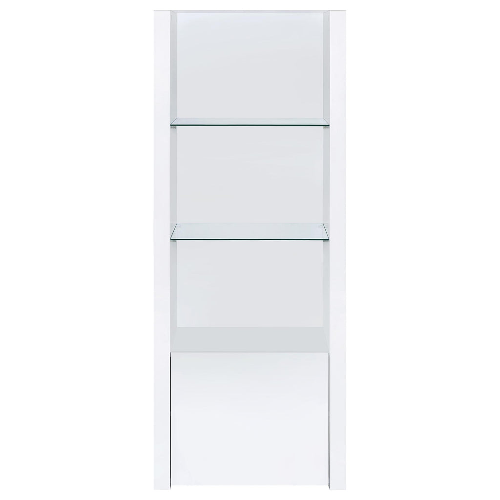 Elevate your entertainment arena with our sleek, modern TV stand. Drenched in a pristine glossy white-on-white finish, it radiates sophistication, accentuated by clear glass details. Its soft-close drawers ensure smooth operation, while glass shelves present a chic display option. Generous storage compartments cater to all your media needs. To enhance the ensemble, the set comes with matching media towers, amplifying storage capacity and offering a unified, stylish appearance. This combo not only meets functional demands but also serves as a captivating focal point in any contemporary space.