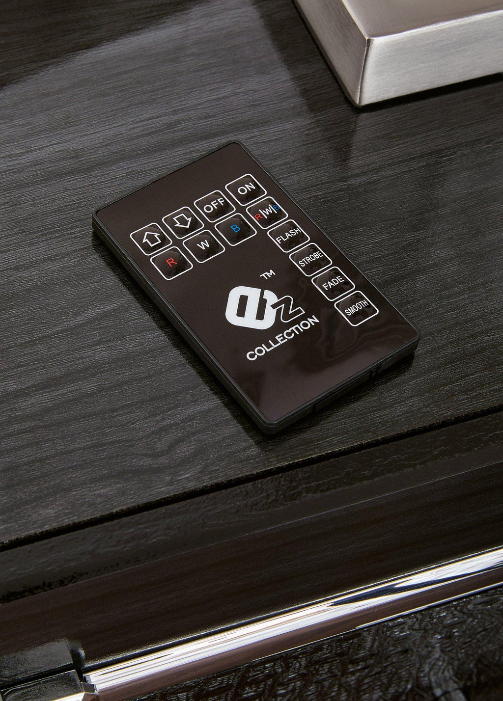 Rest easy. The luxurious look you’ve been dreaming of is yours for the taking—at a price sure to put you at ease. This panel bed brings a sense of old Hollywood with a contemporary flair. A deep, dark finish, faceted chrome-tone accents and LED lighting exude Hollywood-chic style to the max. Padded windowpane-stitching on the sleek, black upholstery infuses a sumptuous look that’s upscale and indulgent, and utterly on trend. A wireless remote allows you to control the color and brightness to suit the mood.