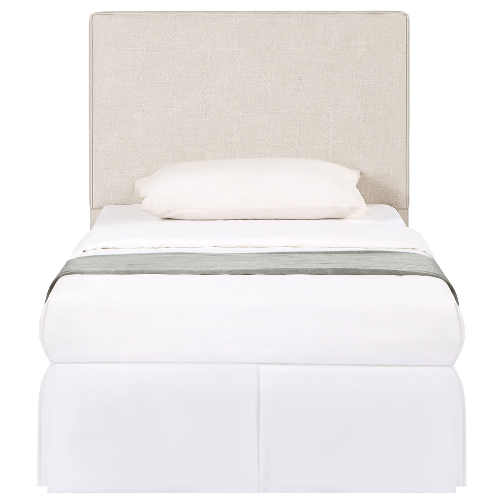 The exemplary and simple style of this classic headboard offers a perfect update to any bed. This upholstered headboard blends clean lines and dimensional upgrades to transform a bedroom into a haven for relaxation. Self-welt construction details add a sleek look to the outer border. Textured sand finish fabric wraps over the headboard, offering a modern look and a light, elegant palette that accommodates a variety of options for matching case pieces, beds, and accessories. Constructed of pine wood.