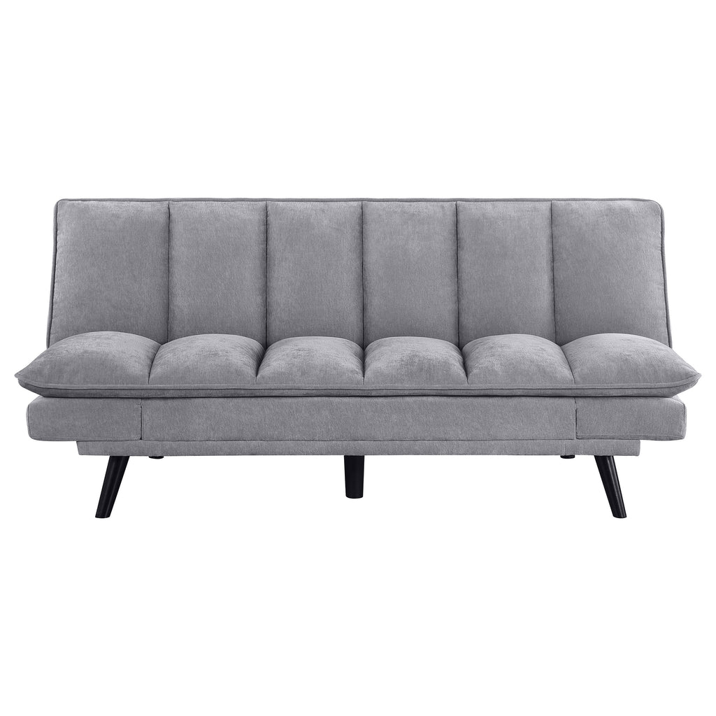 Versatility reigns in a modern sofa bed. Soft upholstery complements perfectly, bringing inviting style to a convertible design. It goes from sofa to bed with a lay-flat mechanism, perfect for a multi-functional space like a home office or compact living room. Tufting adds a sense of structure to the design. Splayed legs receive a black finish, offering a chic look against lighter upholstery. Key Features: • A folding mechanism allows this sofa bed to transform in your home office or living room • Tufting adds depth and support to foam cushioning that's comfortable when seating or laying down • Velvety soft upholstery in a neutral color complements in virtually any setting • Convertible design includes angled arms that lay flat when acting as a bed • Splayed black finish legs include plastic glides to protect delicate flooring
