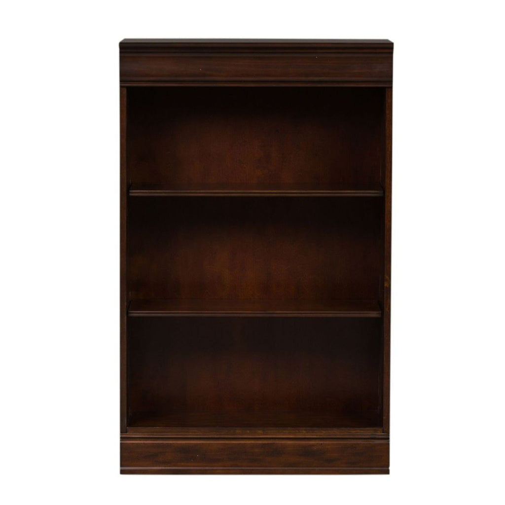 Liberty Furniture Brayton Manor Jr Executive 48 Inch Bookcase (RTA) in Cognac 273-HO3048-RTA. Create scale, add comfort, and define your style with the Brayton Manor Jr executive 48" bookcase. Crafted with poplar solids with cherry and birch veneers, this piece features a smooth cognac finish and adjustable shelving. Crown molding outlines two shelves and the bottom panel, which acts as a third shelf. Expand this piece, as it can be bunched!