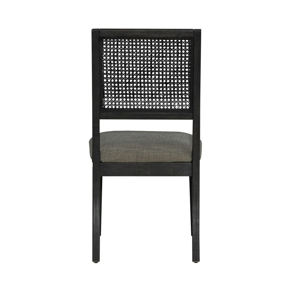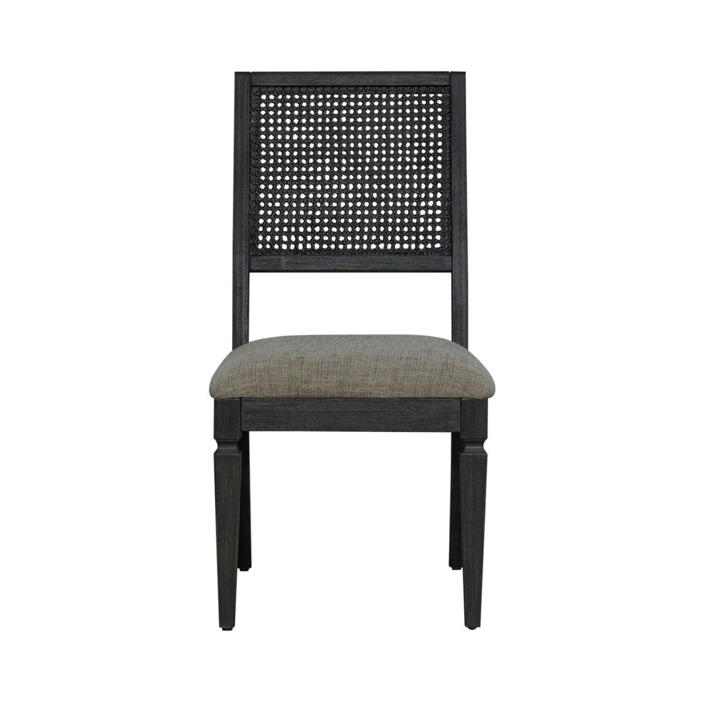 Liberty Furniture Caruso Heights Panel Back Side Chair (Set of 2) in Aged Whiskey 271-C9101S. Enrich every occasion with the Caruso Heights panel back side chair. Crafted with Rubberwood solids, this chair features an Aged Whiskey finish. Attention is immediately drawn to the cane chairback. The padded upholstered seat not only offers comfort, but the Cream and Black tweed fabric will delight the eye. The square tapered legs offers a clean look and features nylon chair glides to protect your flooring. Live comfortably inside your home with the Caruso Heights panel back side chair.