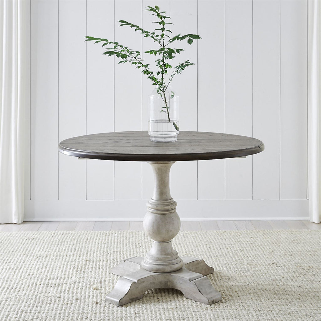 Liberty Furniture Willowrun Round Single Pedestal Table in Rustic White
