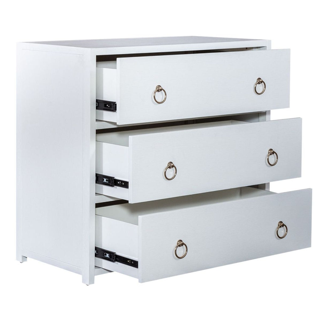 Liberty Furniture Midnight Accent Cabinet in Wire Brushed White 2030WH-AC3432. Turn your house into a home with the eclectic East End accent cabinet. Crafted of Acacia Solids and veneers, this piece features a wire brushed white finish accented with brass ring hardware. This cabinet offers three deep full extension drawers for storage and is versatile enough to work in any room, from your entry hall to your bedroom. Unique and timeless, allow the East End accent cabinet to bring inspirational design into your home.