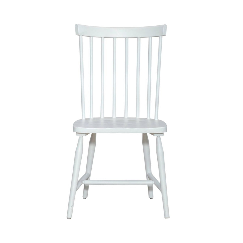 Liberty Furniture Palmetto Heights Spindle Back Side Chair (Set of 2) in Two-Tone 499-C4000S. Home and perfection are achievable with the Palmetto Heights spindle back side chair. Crafted with excellence using rubberwood solids, this spindle back side chair features a Shell White finish. Whether you want to escape to the good life, where every day is a vacation, or you want to bring a new level of sophistication to your home, Palmetto Heights offers a way to express your personality without sacrificing style. This chair features a curved spindle back with a saddle shaped seat for added comfort. Splayed round turned legs flow into an H-style stretcher. Nylon chair glides are added to protect your flooring. The Palmetto Heights spindle back side chair offers a unique point of view that is sure to inspire.