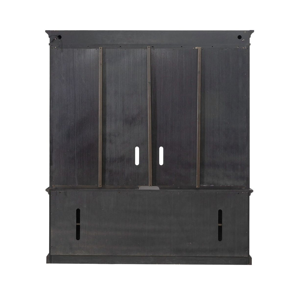 Liberty Furniture Paradise Valley Entertainment Center in Saddle Brown 297-ENT-ENC. Make your home impressive with the Paradise Valley entertainment center. Crafted with Rubberwood solids and Split Heart White Oak veneers, this set features a Saddle Brown finish. The console showcases breakfront styling and has two full extension drawers and two doors with wood framed drawer and door fronts that are accented with bead molding and Antique Pewter drop bail and knob hardware. One adjustable shelf is located behind each door. The hutch features a heavy top crown, a planked back panel, and an adjustable/removable shelf. Touch LED lighting will illuminate your display. Wire management provisions are added to conceal wiring. Chamfered pilasters soften the entertainment center and flow to a heavy plinth base. Paradise Valley captures grand opulence with comfortable rustic styling.