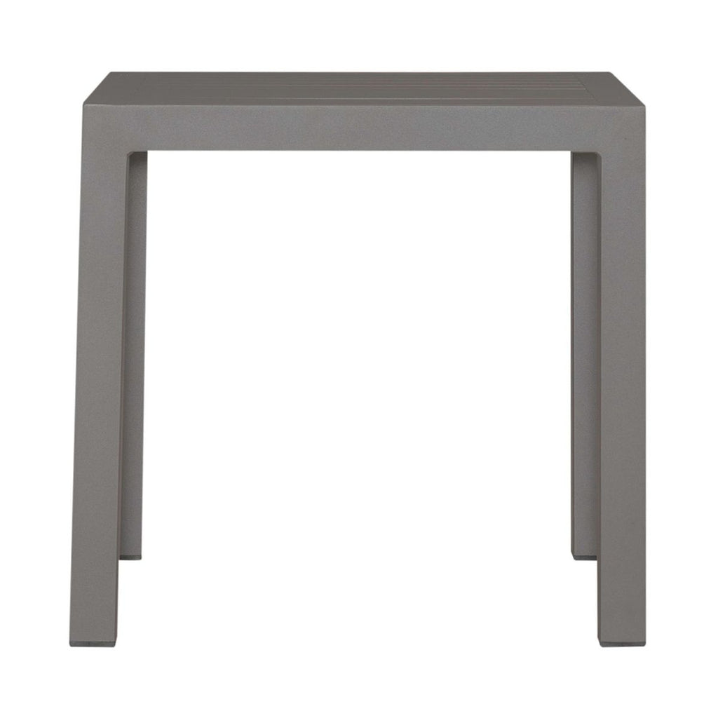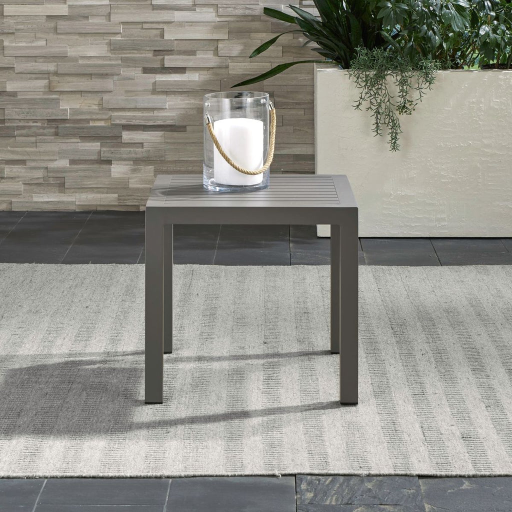Liberty Furniture Plantation Key Outdoor End Table in Granite 3001-OET1020-GT. Keep your cold beverage and sunscreen within arm's reach with the Plantation Key outdoor end table. Crafted with excellence using Cast Aluminum, this piece features a Granite finish. The slatted top is a unique design element that will turn heads and delight the eye, and flows seamlessly into the square block legs. With Cast Aluminum being known to stand up well to weather and rust, this outdoor end table will become a staple in your outdoor gatherings for years to come. Reclaim the outdoors with the Plantation Key outdoor end table.