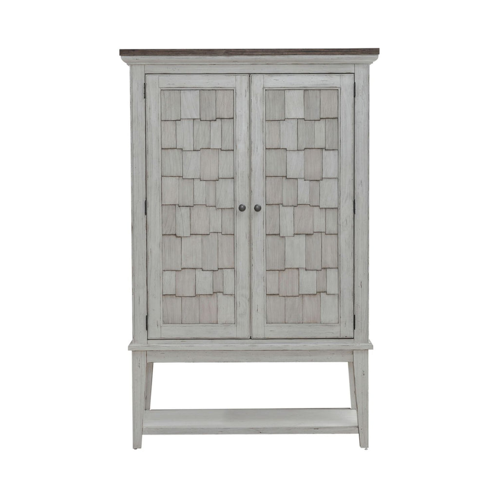 Liberty Furniture River Place Bar Cabinet in Riverstone White & Tobacco EST SHIP TIME APPX 4 WEEKS, 50W x 20D x 78H, 288lbs.