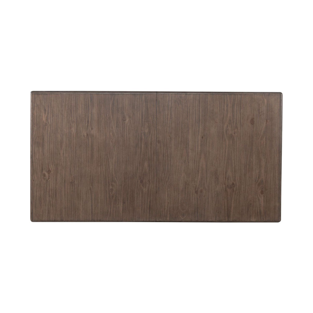 Liberty Furniture River Place Trestle Table in Riverstone Gray & Tobacco. Designed to entice a sense of calm and tranquility into interior spaces, the River Place trestle table strikes the perfect balance of life on the coast and a comfy home tucked away in the hills. Crafted of Pine solids and veneers, this table features a heavily distressed Riverstone White and Tobacco finish. The trestle table includes a removable and self-storing eighteen inch leaf on an easy glide leaf track system to make expansion a breeze. The top offers softly rounded edges with step molding that flow to the heavy turned pedestals with a center trestle to ensure stability. The River Place trestle table creates an inviting airy atmosphere in your home while providing comfort in your own private getaway.