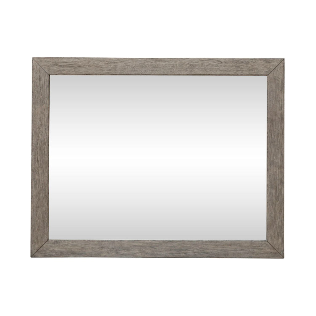 Liberty Furniture Skyview Lodge Landscape Mirror in Cobblestone 906-BR51. Get a different vantage point with the Skyview Lodge landscape mirror. Meticulously crafted with Rubberwood solids, this mirror features a Cobblestone finish. The landscape mirror boasts a picture frame design, characterized by wide moldings that add depth and dimension to its appearance. The softly rounded edges lend a sense of gentleness, infusing the mirror with a subtle warmth that invites admiration. At the heart of it all, a 1-inch beveled edge adds a touch of sparkle, catching the light and casting a radiant glow across the room. Bolt on supports are included to attach to the Skyview Lodge 9 drawer dresser. Whether sitting by a roaring fire or roaring river, Skyview Lodge creates the perfect casual, relaxing environment.
